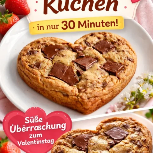 Ich backe dieses einfache Herz-Kekskuchen-Rezept jedes Jahr kurz vor dem Valentinstag: 30 Minuten, wenig Aufwand und trotzdem hübsch und lecker. Der Teig ist buttrig, hält die Herzform gut und bekommt durch 100 g Schokoladenstückchen ein schönes Schoko-Knusper. Wenn du nach einem schnellen Geschenk oder einer Backaktion mit Kindern suchst, ist dieses Rezept perfekt — und falls du danach Herzhafte Ideen willst, passt gut auch mein Rezept für Hackbällchen in cremiger Sauce als herzhaftes Gegenstück.