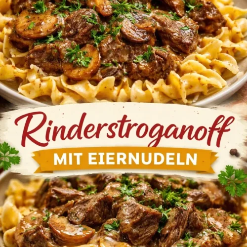 Ich koche Rinder Stroganoff seit Jahren, weil es schnell, sättigend und trotzdem elegant wirkt — perfekt für einen entspannten Familienabend oder ein ungeplantes Gästeessen. Dieses Rezept bringt zarte Rindfleischstreifen, karamellisierte Zwiebeln und gebratene Champignons in einer samtigen saure-Sahne-Sauce zusammen. Wenn Sie Rindergerichte mögen und nach Varianten suchen, probieren Sie auch meine Idee für kleine Filet-Häppchen als Party-Imbiss: Mini Rinderfilet Wellington Bites.