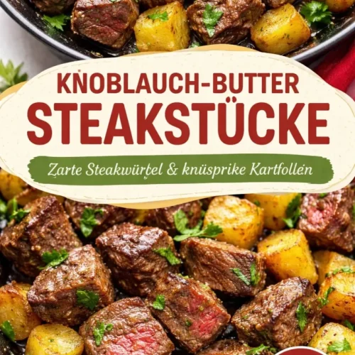 Ich koche dieses Gericht gern, wenn es schnell gehen soll, aber trotzdem nach einem richtigen Sonntagsessen schmecken soll: cremige Knoblauch-Butter-Steakbisse mit Kartoffeln sind genau das — zarte Steakwürfel, gebräunt in Butter, mit aromatischem Knoblauch und gebratenen, vorgekochten Kartoffelwürfeln. Das Gericht ist unkompliziert, sättigend und ideal für Familienessen oder wenn Gäste kurz vorher ankündigen. Wenn du dazu noch etwas extra Cremigkeit möchtest, passt unsere Cremige Parmesan-Pasta hervorragend als Beilage.