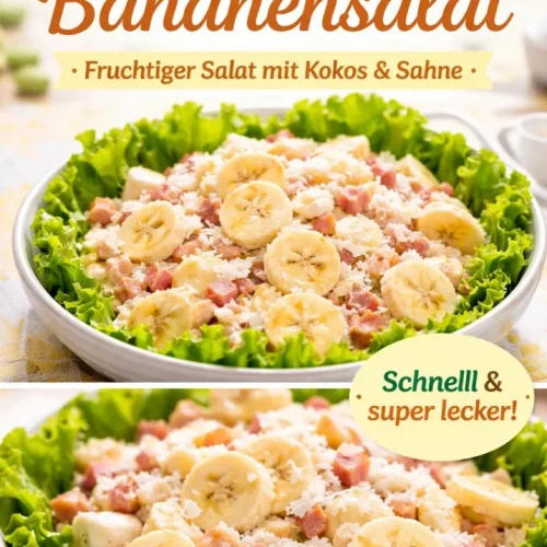 Ich habe diesen Afrikanischen Bananensalat schon bei Familienfesten in der ehemaligen DDR gesehen und immer wieder gemocht: eine ungewöhnliche, süß-würzige Kombination, die sowohl als Beilage zu deftigen Gerichten als auch als leichte Sommer-Vorspeise funktioniert. Der Salat mischt reife Bananen mit Curry, getrockneten Aprikosen (oder frischen Früchten), Zwiebeln und einem cremigen Dressing — einfach, schnell und überraschend vielseitig.