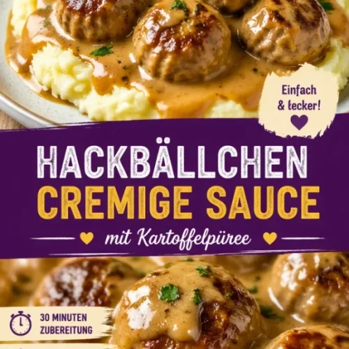 Es gibt Gerichte, die in jeder Familie einen besonderen Platz einnehmen – Cremige Hackbällchen in Sauce mit Kartoffelpüree sind definitiv eines davon. Diese wohltuende Kombination aus zarten Hackbällchen und einem samtigen Kartoffelpüree ist ideal für gemütliche Abende mit der Familie oder Freunde. Egal, ob es draußen kalt ist oder ihr einfach nur etwas Herzhaftes genießen möchtet, dieses Rezept zaubert ein Gefühl von Hausmannskost auf den Tisch, das jeder lieben wird.