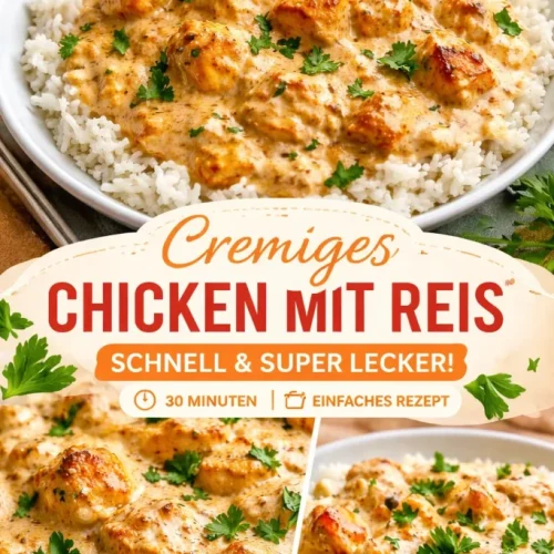 Ich habe dieses cremige Hähnchen‑und‑Reis‑Rezept oft an stressigen Abenden gekocht — es ist schnell, tröstlich und lässt sich leicht variieren. Mit zarten Hähnchenstücken, sahniger Sauce und geschmolzenem Käse entsteht ein Gericht, das Kinder und Erwachsene gleichermaßen mögen. Wenn du danach noch eine leichte Vorspeise suchst, passt unsere wärmende Butternut‑Kürbis‑Suppe wunderbar als Ergänzung.