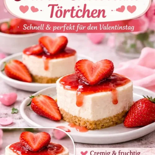 Kleine, portionierte Cheesecake-Herzen sind unkompliziert, sehen toll aus und lassen sich gut vorbereiten. Du brauchst keine Backform mit hohem Aufwand, kein Wasserbad und keine langen Backzeiten — daher sind sie ideal, wenn du Gäste erwartest oder einen stressfreien Nachtisch suchst. Außerdem kannst du Zutaten leicht austauschen (glutenfrei, vegan, weniger Zucker) und die Optik mit frischen Beeren oder Minzblättern aufpeppen.