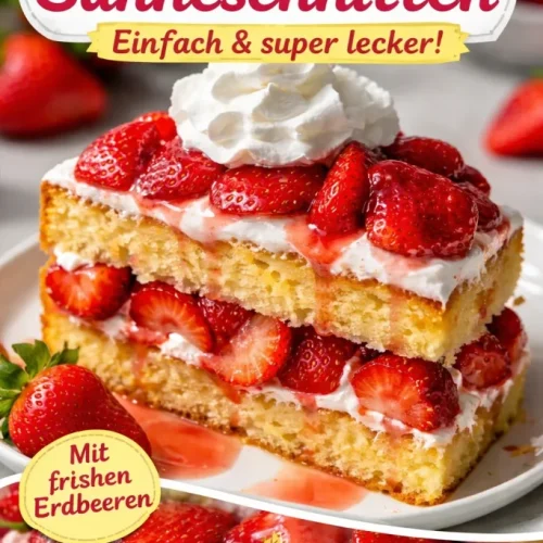 Erdbeer-Shortcake ist die Perfektion aus drei einfachen Komponenten: weicher Biskuit, süße Beeren und stabile Schlagsahne. Das Ergebnis ist leicht, nicht zu mächtig und lässt die Erdbeeren im Mittelpunkt stehen. Es ist ideal für spontane Gäste, Brunches oder ein schnelles Sommerdessert.