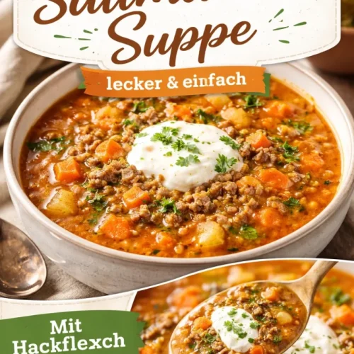 - Mit Hackfleisch: Rinder- oder Schweinehack anbraten, dann wie im Rezept fortfahren — macht die Suppe gehaltvoller.