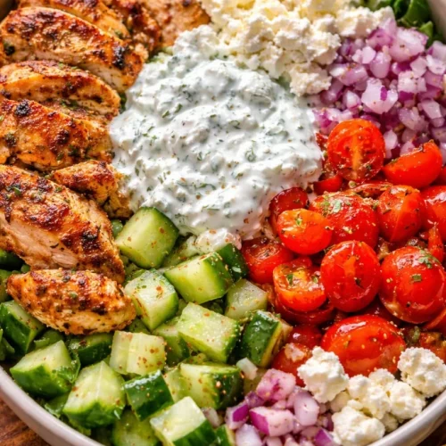 Ich liebe die Kombination aus saftigem, zitronig gewürztem Hähnchen und knackigem Gemüse — diese Griechischen Hühnchenschalen sind genau das: ein unkompliziertes, gesundes Essen, das sich perfekt für schnelle Abendessen unter der Woche oder fürs Meal-Prep eignet. Saftige Hähnchenbrust, nussiger Vollkornreis oder Quinoa, Kichererbsen für Protein und cremiges Tzatziki — alles trifft in einer Schüssel zusammen und liefert Geschmack, Textur und Sättigung in einem. Wenn du griechische Aromen magst, lohnt sich auch ein Blick auf dieses authentische Rezept für Gyros-Suppe zum Inspirieren.