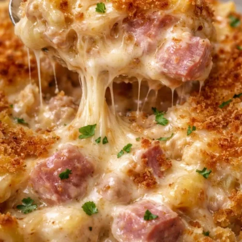 Ich habe dieses Hähnchen Cordon Bleu als Auflauf umgewandelt, weil ich alle klassischen Aromen (Schinken, Schweizer Käse, cremige Sauce) liebe, aber keine Zeit für einzelne panierten Schnitzel hatte. Das Ergebnis: ein familienfreundliches, unkompliziertes Gericht, das fast wie Cordon Bleu schmeckt — nur schneller und perfekt für Wochenabende oder zum Mitnehmen zur Potluck-Party.