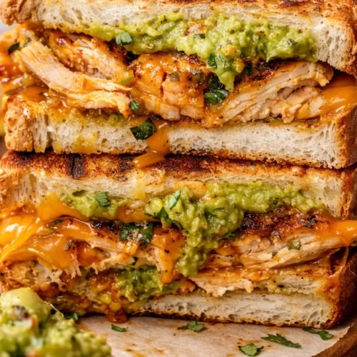 Dieses Sandwich verbindet Texturen und Aromen, die zusammen mehr ergeben als die Summe ihrer Teile: cremige Avocado, proteinreiches Hühnchen und reichhaltiger, geschmolzener Käse. Es ist schnell, anpassungsfähig und funktioniert mit Zutaten, die die meisten Vorratsschränke ohnehin bieten.