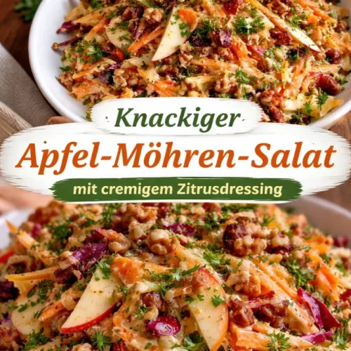 Dieser knackige Apfel-Möhren-Salat mit cremigem Zitrusdressing ist ein schneller, vielseitiger Begleiter für viele Gelegenheiten — von Alltagsessen bis Picknick oder Buffet. Wenn Sie noch Inspiration für ähnliche Kombinationen suchen, lohnt sich ein Blick auf Carrot Apple Slaw ~ Crunchy, Creamy, DELICIOUS! – FIVEheartHOME für eine amerikanisch geprägte Variante mit Feta und Cranberries. Für eine andere Interpretation mit ähnlich frischen Texturen sehen Sie auch diese Variante: Crunchy Apple & Carrot Salad With Creamy Dressing: Recipe by …. Viel Spaß beim Probieren und Anpassen nach Ihrem Geschmack!