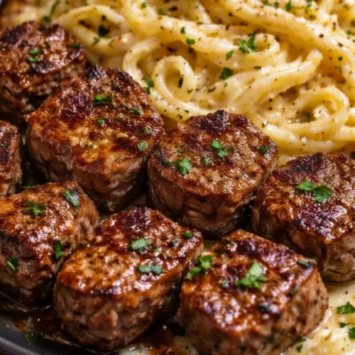 Wenn du eine verlässliche Kombination aus zartem Rindfleisch und cremiger Pasta suchst, ist dieses Gericht eine unkomplizierte Lösung mit großem Geschmack. Für eine ähnliche Variante mit detaillierten Mengenangaben und weiteren Tipps kannst du das Originalrezept ansehen: Steakbissen in Knoblauchbutter mit Parmesan-Sahnesauce von ulesla.
