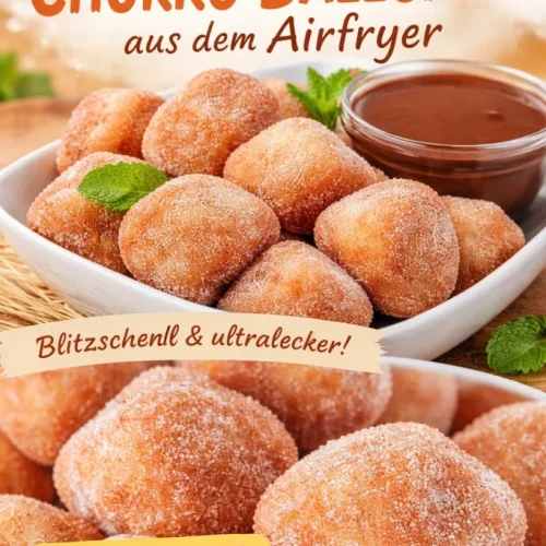 Ich habe dieses Rezept zum ersten Mal an einem verregneten Sonntagnachmittag ausprobiert — knusprig außen, weich innen und perfekt, um Kinder (und Erwachsene) aufzuheitern. Knusprige Churro-Happen aus der Heißluftfritteuse sind kleine Brandteig-Stücke, in Zimt-Zucker gewälzt, die weniger Öl benötigen als klassische frittierte Churros und trotzdem viel vom traditionellen Geschmack bewahren. Sie sind schnell zubereitet, ideal als Snack für Gäste oder als süßer Abschluss eines Familienessens. Wenn du öfter mit einem Airfryer backst, lohnt sich ein Blick auf unsere Airfryer-Rezepte — hier findest du ähnliche Ideen und Inspiration.