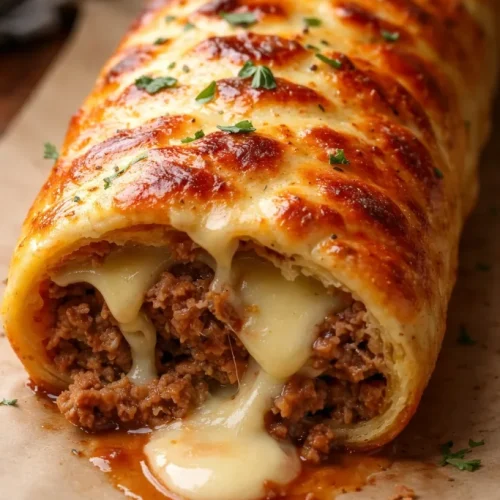 Ich habe diese Hackfleisch-Käse-Rolle schon oft für Gäste und schnelle Familienessen gemacht — sie ist unkompliziert, sättigend und lässt sich gut vorbereiten. Das Grundprinzip ist einfach: saftiges gewürztes Hackfleisch, geschmolzener Käse und ein Bindemittel, das alles zusammenhält. Ob als rustikale Pfannenrolle oder im Blätterteig gebacken, das Ergebnis ist immer herzhaft und beliebt. Wenn du nach weiteren unkomplizierten Familienrezepten suchst, probier auch unser perfektes Pfannkuchen-Rezept ohne Ei — das passt gut zu Brunchs mit dieser Rolle.
