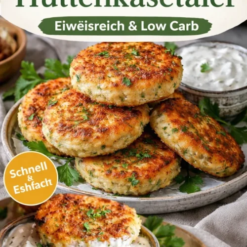 Ich mache diese Hüttenkäse-Taler oft an stressigen Morgen oder wenn ich etwas Proteinreiches für ein leichtes Abendessen möchte. Saftig, leicht zitronig und schnell gemacht — sie passen zu Salat, Dips oder einfach pur. Die Kombination aus körnigem Hüttenkäse und Haferflocken ergibt eine angenehme Textur: außen leicht gebräunt, innen weich und eiweißreich.
