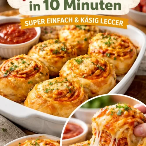 Diese schnellen Pizza‑Rollen sind ideal, wenn es schnell, lecker und praktisch sein soll — besonders für Familienabende, Partys oder als Snack. Für eine ähnliche Idee mit Pepperoni‑Aromen schau dir die Inspiration zu Pepperoni‑Pizza‑Bread an: Pepperoni Pizza Bread | Bake to the roots. Wenn du die Originalquelle dieser einfachen Pizza‑Rollen sehen möchtest, findest du das Rezept bei Chefkoch unter: Schnelle Pizza‑Rolls von sophie_pasch – Chefkoch.