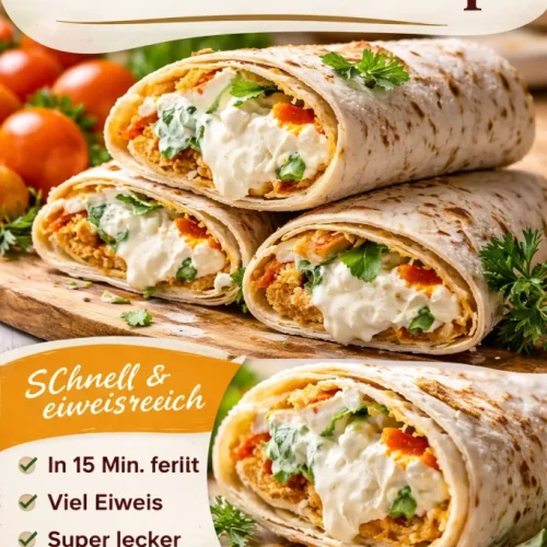 Ich mache diese Proteinwraps seit Monaten, wenn ich ein schnelles, eiweißreiches Mittagessen will, das sich einfach füllen und mitnehmen lässt. Sie sind fluffig, saftig durch den körnigen Frischkäse und sättigen dank Haferflocken — perfekt für Wochenenden mit Brunch oder eine proteinreiche Lunchbox für die Arbeit.