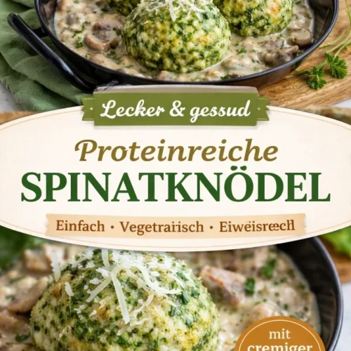 Ich mache Spinatknödel mit Champignonsoße seit Jahren — sie sind ein Familienklassiker, der sich schnell montieren lässt, gut vorbereitet werden kann und alle begeistert: saftige, würzige Knödel aus Topfen und Spinat, serviert in einer cremigen Pilzsoße. Ideal für ein gemütliches Abendessen, wenn es draußen kalt ist, oder als ungewöhnlicher Sonntagsbraten. Wenn du öfter einfache, sättigende Mittagsgerichte suchst, schau dir auch diese Sammlung mit weiteren Ideen an: Mittagessen-Rezepte.