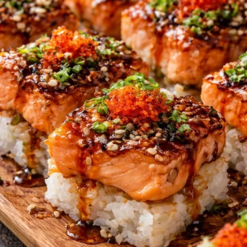 Wenn du eine einfache, teilbare Variante von Sushi suchst, die sich gut für Gäste oder gemütliche Abendessen eignet, ist dieser würzige Lachs‑Sushi‑Auflauf eine fantastische Wahl. Für noch mehr Inspiration bei Sushi‑Backrezepten schau dir dieses Rezept an: How to Make Salmon Sushi Bake – FeedMi Recipes. Wenn du Variationen mit cremiger, scharfer Mayo suchst, ist dieser Beitrag ebenfalls hilfreich: Easy Salmon Sushi Bake with Creamy Spicy Mayo | What Great …. Viel Spaß beim Backen — und lass mich wissen, welche Variante dir am besten schmeckt!